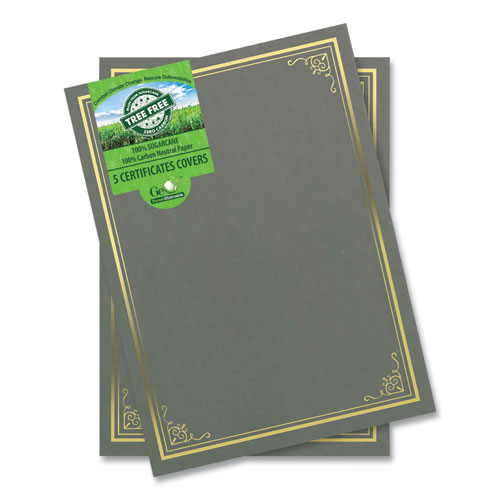 Certificate/Document Cover, 9.75″ x 12.5″, Gray With Gold Foil, 5/Pack
