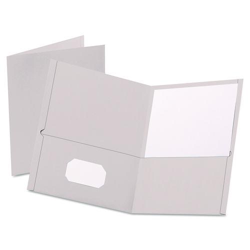 Twin-Pocket Folder, Embossed Leather Grain Paper, 0.5″ Capacity, 11 X 8.5, White, 25/box