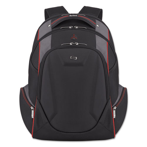 Launch Laptop Backpack, Fits Devices Up to 17.3″, Polyester, 12.5 x 8 x 19.5, Black/Gray/Red
