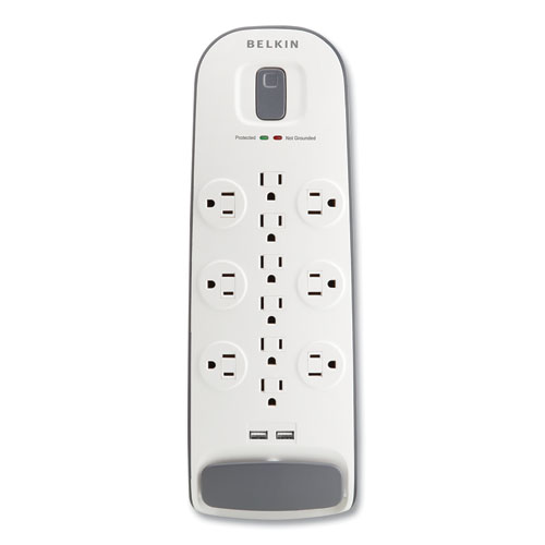 Home/Office Surge Protector, 12 AC Outlets, 6 ft Cord, 3,996 J, White/Black