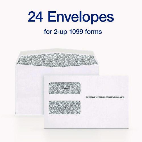 1099 Double Window Envelope, Commercial Flap, Gummed Closure, 5.63 x 9, White, 24/Pack