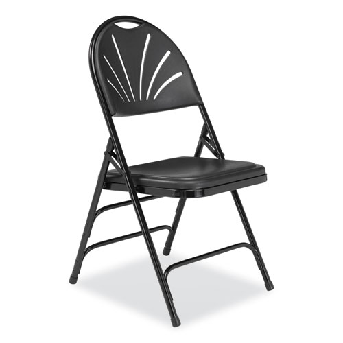 1100 Series Fan-Back Tri-Brace Dual Hinge Folding Chair, Supports Up to 500 lb, 17.75″ Seat Height, Black, 4/Carton