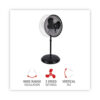 Alera 16″ 3-speed oscillating pedestal fan comes with height adjustable stand (42″ to 49″) to get air where you need it most. The tilting and oscillating functions circulate air effectively in most medium and large rooms. Three speed settings for low, medium, or high fan speeds. The carry handle on the back makes it easy to reposition. A wide disk base provides solid stability.
