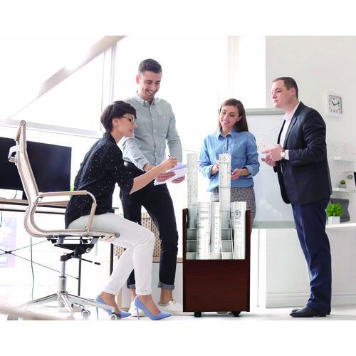 No matter how elaborates your current work-in-progress is, there’s an efficient storage solution for keeping it organized. The AdirOffice Mobile Wood Blueprint Roll File holds your rolled blueprints, plan drawings, maps and other large-format documents snugly in square compartments, making it the perfect organizational solution. Sturdy and visually appealing, the unit is expertly crafted using durable wood composite to provide long-lasting strength and use for many years to come. It’s furnished in laminate that will seamlessly complement any existing decor and boasts a 50 lb weight capacity to hold all of your rolled files in one convenient place. The bottom of the cabinet is outfitted with four swiveling casters to facilitate easy movement of your documents, while side handles make it easy to hold and transport the unit from one location to the next.