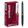 207 Plus+ Gel Pen, Retractable, Medium 0.7 mm, Blue Ink, Black Barrel, Dozen