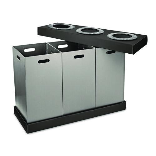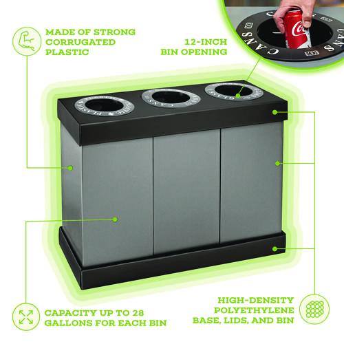 28 Gal. Indoor Trash Cans and Recycling Bins, Corrugated Polypropylene, Gray, 3 Bin