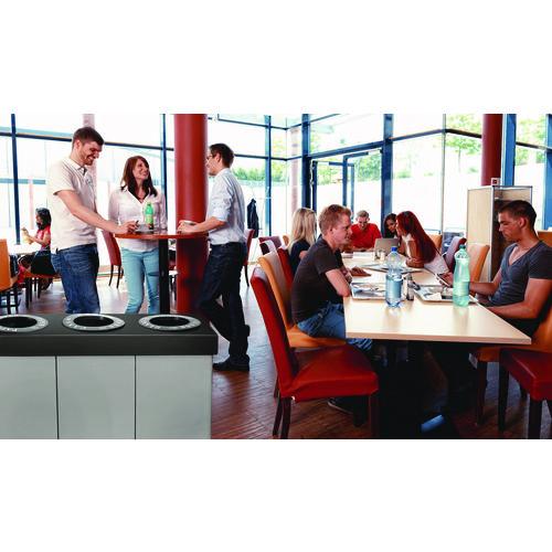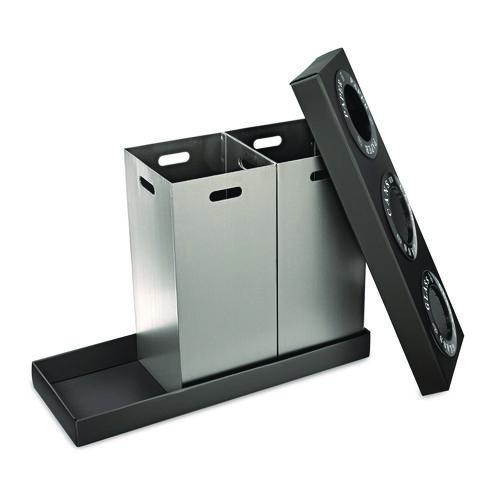 If you are looking for an attractive alternative to exposed garbage bags and other unsightly means of sorting trash from recyclables, the Alpine Industries waste and recycling bins are just the ticket. Lightweight, easily assembled and made of strong and durable corrugated plastic. Designed for indoor use in hospitality suites, meeting areas, dinners and similar venues, they perform best when bins are used as containers for disposable trash bags. Labels included for glass, plastic, paper, recyclables, cans and waste for 12 in deposit openings. Multi-compartment bins each accommodating 28 gallons of waste or recyclables.