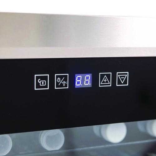 Keep your favorite drinks close by in this compact, 3 cubic feet beverage center fridge with stainless steel frame and double pane tempered glass door from Avanti. The perfect lockable mini fridge for the office, dorm, man cave, she shedt, bar, bedroom, or anywhere you need a little extra refrigerator cooling and storage space. Easily view your drink choices through the glass door. Use the adjustable, removable shelving to arrange drinks for easy access throughout the day. This compact fridge holds 108 12 oz cans and features automatic defrost, so your drinks stay perfectly chilled. Select the right settings at the touch of a button for your items with the electronic display.