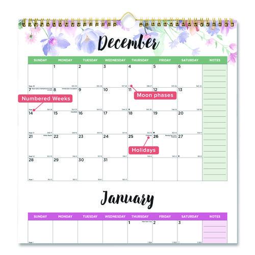 3-Month Wall Calendar, Colorful Leaves Artwork, 12.25 x 27, White/Multicolor Sheets, 14-Month (Dec to Jan): 2025
