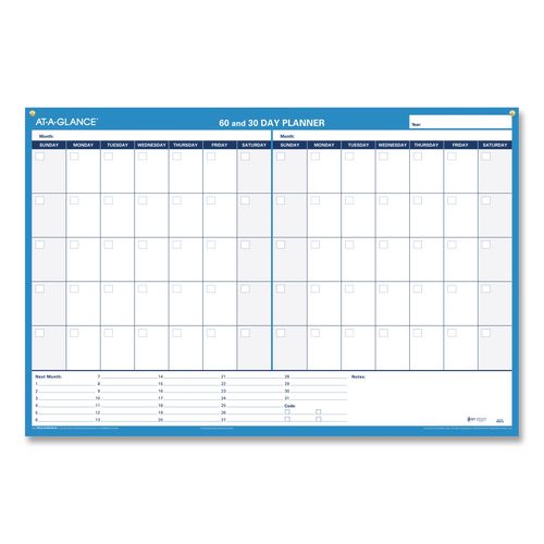 30/60-Day Undated Horizontal Erasable Wall Planner, 36 X 24, White/blue Sheets, Undated