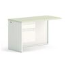 High-pressure laminate top is moisture-, scratch- and stain-resistant. Drawers operate on steel ball bearing slides. Tru-fit mitered drawers with a removable core lock. Cord management grommets and modesty panel. Not freestanding. Attach to single pedestal desk or L-workstation desk to create an L-workstation.