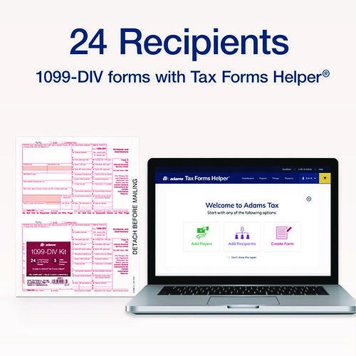 4-Part 1099-DIV Tax Forms with Tax Forms Helper, Fiscal Year: 2024, 4-Part Carbonless, 8 x 5.5, 2 Forms/Sheet, 24 Forms Total