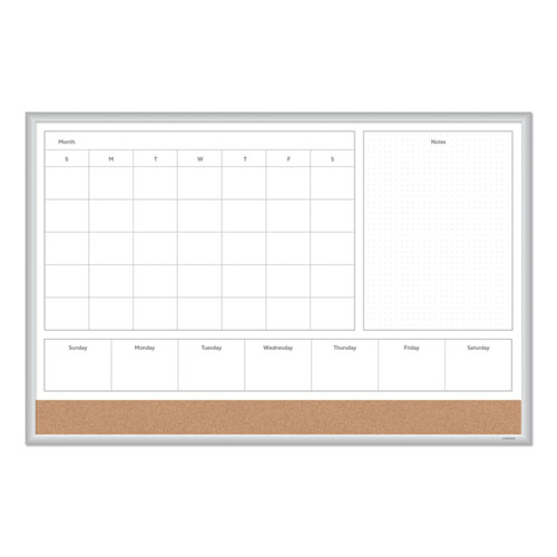 4N1 Magnetic Dry Erase Combo Board, Week/Month Planning, 36 x 24 (Actual Size: 35 x 23), Tan/WH Surface, Satin Aluminum Frame