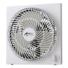 Modern box fan design provides consistent smooth-flow air circulation. 3-speed rotary dial to control air flow. Rubber foot glides for enhanced stability and vibration dampening on most surfaces.
