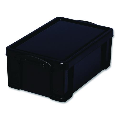 The Really Useful Box storage tote features handles with clip locks to secure the lid, offering convenient storage for your DVDs, CDs, documents, and utensils. The box is extremely durable and is made of 100% recycled plastic.