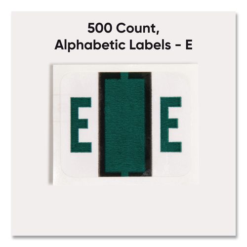 Keep files organized at a glance with these alphabetic labels that feature a wraparound solid color bar and a colored character printed on a white background. Colors are compatible with end tab systems using the bar-style format. Convenient dispensing box for easy peel off and application. Includes 500 labels per roll. Compatible with Tab® Products 1283 series alphabetical labels.