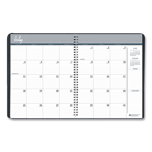 Academic Year 14-Month Recycled Ruled Monthly Planner, 11 x 8.5, Black Cover, 14-Month: July 2025 to Aug 2026