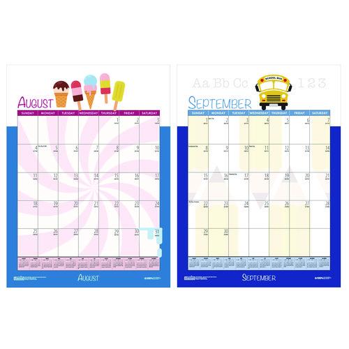 Colorful enthusiastic monthly images depicts each month’s special holiday and season with bright lively designs throughout the page. Full 12-month calendar for longer term planning. Julian dates and days remaining for quick reference. Made entirely of recycled materials.