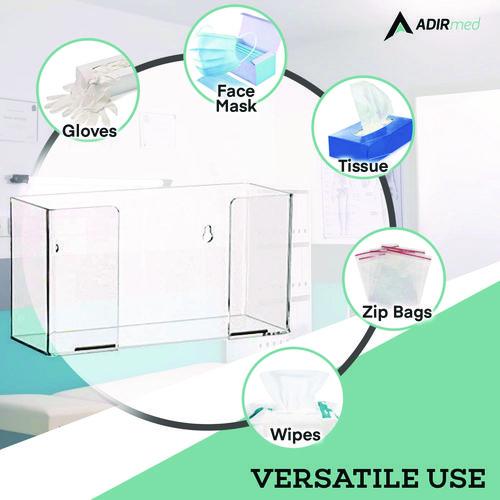 The AdirMed Glove Dispenser is a practical and essential accessory for any office or workplace, designed to keep your environment organized and efficient. Made from high-quality, durable acrylic, this glove dispenser is built to last and withstand daily use in busy settings. Its robust construction ensures that it can handle the demands of various environments, from medical offices to industrial workspaces. One of the standout features of the AdirMed Glove Dispenser is its universal design, which accommodates most brands and sizes of gloves. This versatility ensures that no matter what type of gloves you use, they will fit comfortably and securely in the dispenser. The dispenser is also equipped with mounting holes, making installation quick and easy. You can effortlessly mount it on walls, cabinets, or any other convenient location, ensuring that gloves are always within reach when you need them. By using the AdirMed Glove Dispenser, you can maintain a tidy and organized workspace, reducing clutter and making it easier to access essential supplies. Its sleek and professional appearance adds a touch of sophistication to any setting, while its functionality enhances productivity and efficiency. Whether in a medical office, laboratory, or industrial environment, the AdirMed Glove Dispenser is a valuable addition that helps streamline operations and keep your workspace neat and orderly.