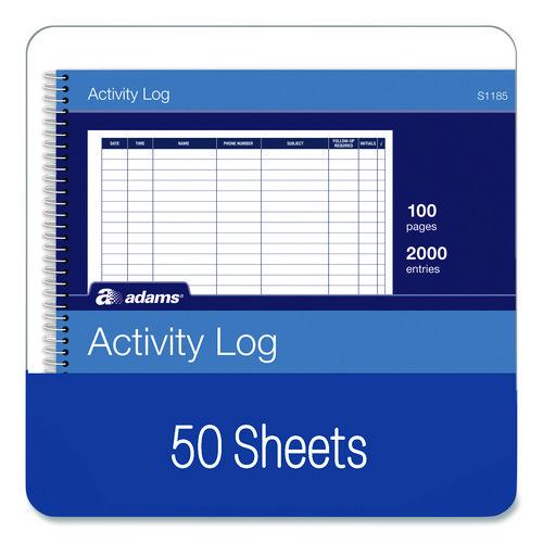 Activity Logbook, 8 Columns, Blue/White Cover, 11 x 8.5 Sheets, 50 Sheets/Book