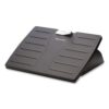 The Fellowes® Office Suites™ Adjustable Footrest supports your feet to help prevent back and leg discomfort and features new and improved Microban® antimicrobial protection to keep product cleaner. Tilt adjusts 30 degrees forward or back while the height adjusts to 4.13″, 4.88″, or 5.63″. The locking mechanism either holds the footrest in preferred position or allows you to rock back and forth to encourage lower leg movement. No bending or stooping—footrest adjusts using only foot pressure.