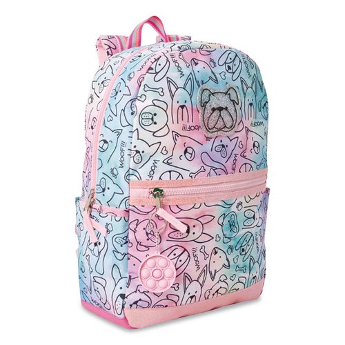 Perfect for back to school and beyond, the super-cute Adorable Dogs Life Backpack features a unique dog theme and a three-dimensional molded-rubber glitter applique. As it’s constructed of rugged polyester with both a padded back and padded adjustable shoulder straps, it’s also durable and comfortable enough for just about anyone, at any age. Two side pockets and one front zip pocket keep important items and school supplies close. Includes a color-coordinated, round-pop key chain.