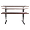 Set the perfect height when sitting or standing, when you choose this electric, three-stage, reversed-telescoping height-adjustable table base. Durable, powder-coated steel base features a 285 lb maximum lift capacity (maximum capacity includes the sold-separately table-top), a 25.75″ lift/lower range (from 25″ to 50.75″) as well as a standard up-and-down control set. Dual-motors provide speeds of up to 1.5″ per second (depending on load); and though designed specifically for use with ALETT Series Reversible Laminate Rectangular Table Tops (sold separately), these steel-frame bases attach to most common rectangular tops ranging from 47″ to 72″ in width and 24″ to 36″ in depth. Integrated crossbar supports prevent racking while ensuring overall stability. Adjustable leveling glides help you compensate for uneven floors. Base includes integrated cable-management channels and a 10 ft power cord. Quick setup with fold-out legs—requires minimal assembly. Table tops and bases are sold and shipped separately—ORDER BOTH.