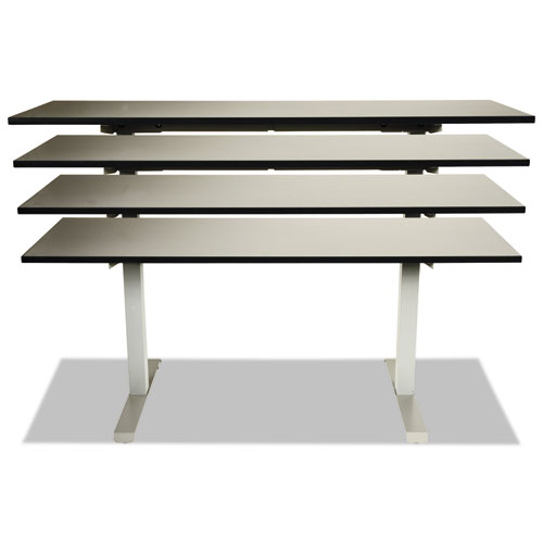 Set the perfect height when sitting or standing, when you choose this electric, two-stage, height-adjustable table base. Durable, powder-coated steel base features a 250 lb maximum lift capacity (maximum capacity includes the sold-separately table-top), a 19″ lift/lower range (from 27″ to 47″) as well as a standard up-and-down control set. Dual-motors provide speeds of up 0.8″ per second (depending on overall load); and though designed specifically for use with ALETT Series Reversible Laminate Rectangular Table Tops (sold separately), these steel-frame bases attach to most common rectangular tops ranging from 48″ to 72″ in width and 24″ to 36″ in depth. Integrated crossbar supports prevent racking while ensuring overall stability. Adjustable leveling glides help you compensate for uneven floors. Base includes integrated cable-management channels and a 9.8 ft power cord. Quick setup with fold-out legs—requires minimal assembly. Table tops and bases are sold and shipped separately—ORDER BOTH.