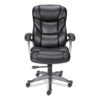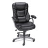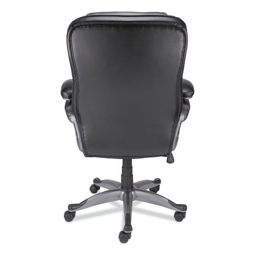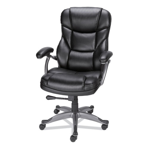 Enhance your workspace and add much needed comfort with a leather-bonded, high-back chair. Constructed with plush padding, integrated lumbar support, and padded armrests to deliver optimal support for your neck, back, and shoulders. The pneumatic height adjustment lets you customize the position to fit your body and workspace. Use the adjustable tilt to find and lock the chair at the perfect angle. Includes durable, rolling casters and a five-star base to easily maneuver over tile or carpeted floors. Some assembly required.