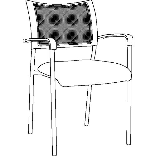 Mesh back chair with cushioned mesh fabric seat for cool comfort. Contoured back provides lumbar support. Durable steel frame with textured matte black finish. Stacks up to five high. Two chairs per carton. Assembly required.