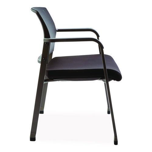 Enhance the look of your lobby or reception area with this sleek guest chair. Its sturdy metal frame ensures reliable support and stability. The chair features a breathable mesh back that promotes airflow for added comfort, while the contoured padded seat offers all-day ease. Designed with curved armrests for improved upper-body support, this chair meets standards for safety and durability.