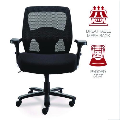 Sit comfortably in a fully adjustable, classic chair that’s specifically designed for the big and tall user. Constructed with a thickly padded seat and breathable mesh back. The tilt-adjustable lumbar support gently cradles your back and locks into position for customized comfort. Pneumatic seat height adjustment and width and height-adjustable arms allow you to individualize support for your back, arms, and shoulders. Five casters on a wide, stable base allows mobility.