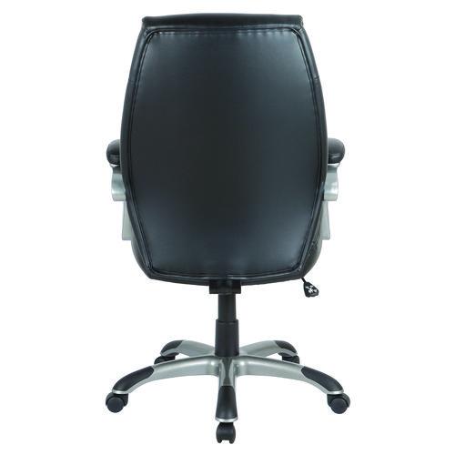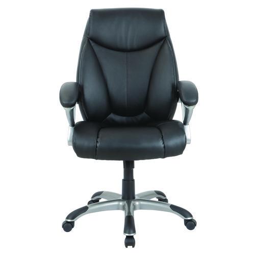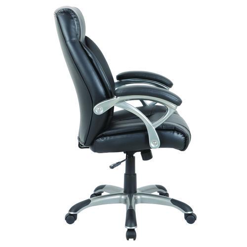 Alera Fulford Bonded Leather High-Back Managers Chair, Supports 275lb, 18.62-22.56″ Seat Height, Black Seat/Back, Silver Base