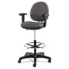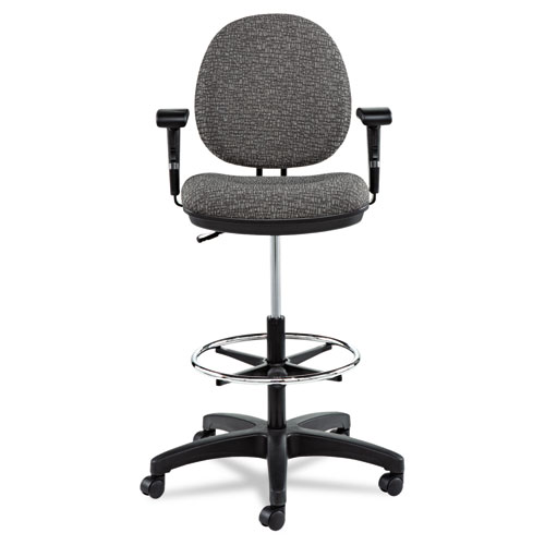 The swivel task stool is an ideal fit for tight workspaces and all-day seating comfort. Constructed with a durable, molded plastic shell that’s designed to resist impact. Built with a comfortable, waterfall seat edge, which helps to relieve pressure points on the underside of legs. Adjustable foot ring for optimal feet positioning. Five-star base with casters for easy mobility. Optional arms are sold separately.