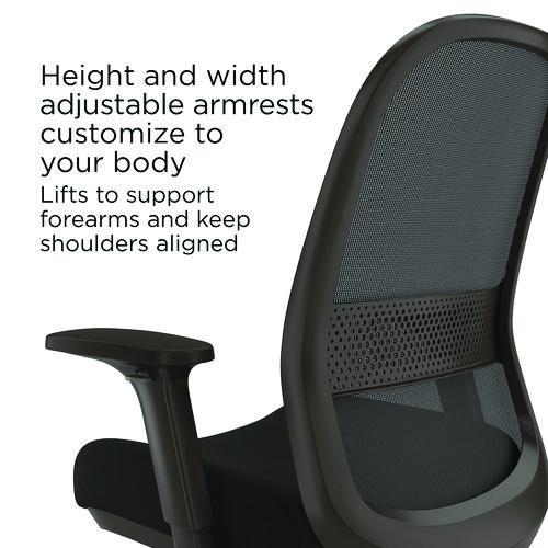 Alera Kempton Fabric Mesh Task Stool, Supports Up to 275 lb, 26.57 to 33.62 Seat Height, Black Seat, Black Back, Black Base