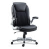 Alera Leithen Bonded Leather Midback Chair, Supports Up to 275 lb, Black Seat/Back, Silver Base