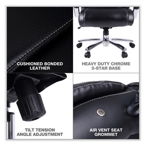 Alera Maxxis Series Big/Tall Bonded Leather Chair, Supports 500 lb, 19.7″ to 25″ Seat Height, Black Seat/Back, Chrome Base
