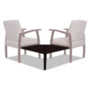 Stylish wood ganging tables designed to seamlessly attach with coordinating guest chairs. Create coffee tables between chairs or corner configurations to fit any space. Reinforced brackets with multiple connection points for a solid tabletop. Durable woodgrain laminate is water-, scratch-, and dent-resistant.