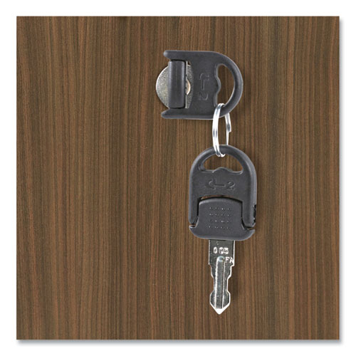 Mobile file cabinet is ready to go anywhere you need it to go. Full-extension ball bearing slides on file drawer for easy access to files. The drawers lock for securing contents. Durable 3 mm edge banding protects against bumps and dings. Five casters, two locking. Center caster prevents tipping. Fully assembled, just attach casters. Two, fold-away keys which provide a slimmer profile are included.