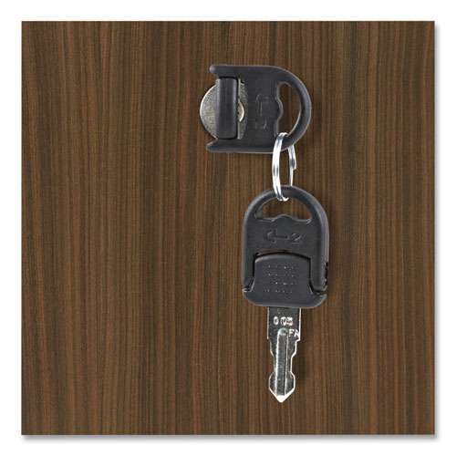 A contemporary classic file cabinet with clean lines and modern metal work. Thermally fused woodgrain laminate is scratch-, dent-, and water-resistant. The drawers operate on steel ball bearing, full-extension glides and accommodate letter/legal filing. Central locking safety keys fold-away for a slimmer profile. Easily mobile on five casters (two locking) and front center caster helps prevent tipping. Arrives fully assembled, just attach casters.