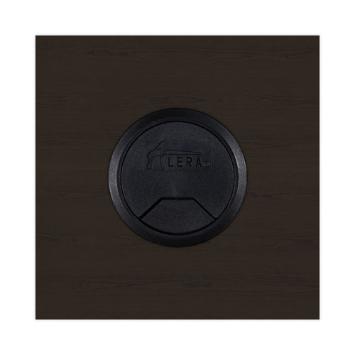 Durable, commercial grade laminate work surface and side panels are water, scratch, and stain resistant. The charcoal accent line under the work surface adds style and a distinctive touch. A protective edge banding helps to prevent damage from bumps. Two grommets for cable and wire management to tuck away your computer and device cords. Full-length modesty panel for added privacy.