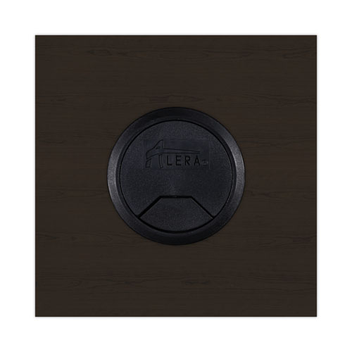 Durable, commercial grade laminate work surface and side panels are water, scratch, and stain resistant. The charcoal accent line under the work surface adds style and a distinctive touch. A protective edge banding helps to prevent damage from bumps. Two grommets for cable and wire management to tuck away your computer and device cords. Full-length modesty panel for added privacy.