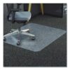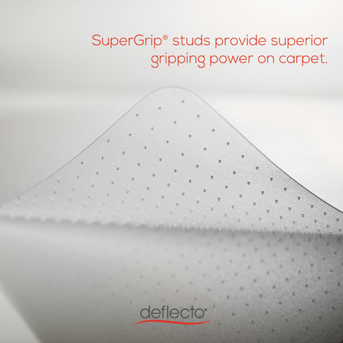 Offering high-level performance, Deflecto’s polycarbonate office chair mat is extremely durable and resilient with twice the impact resistance of vinyl chair mats. Provides a convenient floor-protecting surface for home or office chairs. Exceptional clarity in this heavy-duty chair mat allows fine flooring to shine through. Enjoy reliable floor protection that won’t crack, curl, or discolor from normal use. These rigid, polycarbonate chair mats provide less friction and prevent dishing compared to traditional vinyl chair mats, and feature an easy-glide rolling surface that provides smooth desk chair movement.