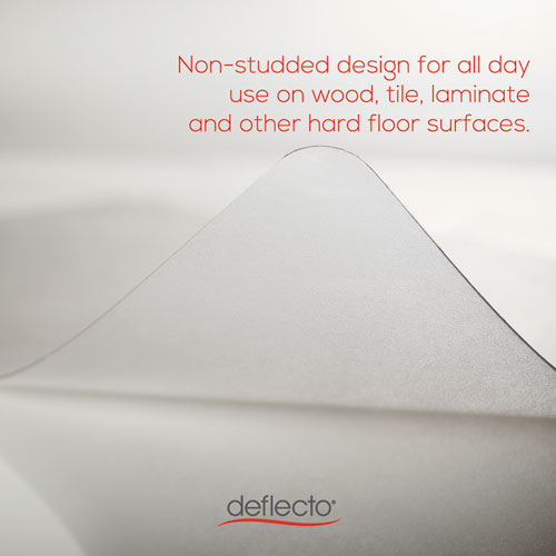 Offering high-level performance, Deflecto’s polycarbonate office chair mat is extremely durable and resilient with twice the impact resistance of vinyl chair mats. Provides a convenient floor-protecting surface for home or office chairs. Exceptional clarity in this heavy-duty chair mat allows fine flooring to shine through. Enjoy reliable floor protection that won’t crack, curl, or discolor from normal use. These rigid, polycarbonate chair mats provide less friction and prevent dishing compared to traditional vinyl chair mats, and feature an easy-glide rolling surface that provides smooth desk chair movement.