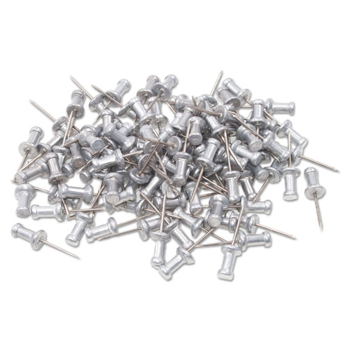 Aluminum Head Push Pins, Aluminum, Silver, 0.63″, 100/Box