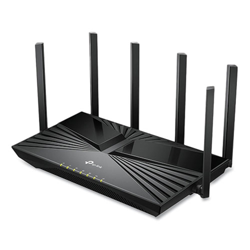 Enjoy stable Wi-Fi connections, even in the kitchen and bedroom, with this TP-LINK Archer AX4400 Wi-Fi 6 router. High-power FEM, six antennas, beamforming, and 4T4R structures combine to adapt Wi-Fi coverage to perfectly fit your home and concentrate signal strength towards your devices. Easily handle dozens of devices streaming and gaming at the same time: OFDMA and MU-MIMO combine to future-proof your home network by providing greater capacity to connect more devices. Measures 2″h x 10.3″w x 5.7″d.