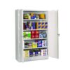 Commercial grade jumbo assembled steel storage cabinet. Fully assembled and ready for immediate use. Super heavy-duty construction built to handle all your storage requirements. Two brushed chrome handles. Right handle uses three-point keyed locking to secure both doors. Storage cabinet is electrostatically painted with a tough, long lasting powder finish to ensure years of lasting beauty.