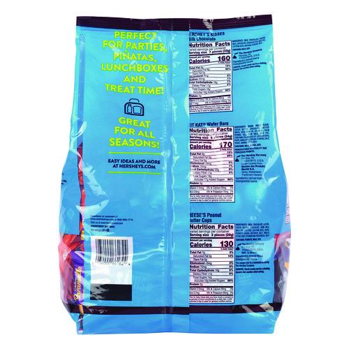 Enjoy a delicious milk chocolate treat anywhere and anytime with this value pack of Hershey assorted candy, perfect for parties, holidays and fundraisers. Offering five miniature crowd-pleasing favorites, this kosher candy assortment is perfect for sharing with family, friends, teammates or co-workers. Take this assorted candy bag into the office break room, pour some individually wrapped candies into your jar at home or take a bag to your next sports game to celebrate the win. This assortment includes Kit Kat milk chocolate wafer candy bars, Reese’s milk chocolate peanut butter cups candy, Hershey’s milk chocolate candy bars, Hershey’s Kisses milk chocolate candy and Cadbury Caramello milk chocolate caramel candy bars. They’re perfect for parties, lunch boxes, desserts, picnics, tailgate parties and more. Add this bag of miniature assorted milk chocolate candies to your holiday festivities, too. Stuff Christmas stockings, fill Easter baskets, create Valentine’s Day gift bags and fill Halloween party candy bowls with these delicious milk chocolate treats that suit every occasion and every taste. Make the major holidays and all of the ordinary moments in between a little sweeter with this classic assortment.
