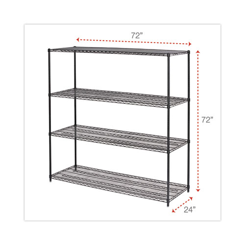 BA Plus Wire Shelving Kit, Four-Shelf, 72w x 24d x 72h, Black Anthracite Plus