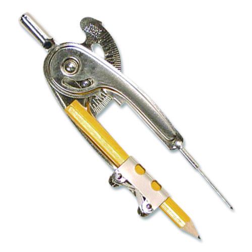 Designed for students. All metal nickel plated with easy grip top for firm control. Scaled with inches and metric on arm. Easily adjusts to draw circles up to 13″ diameter.